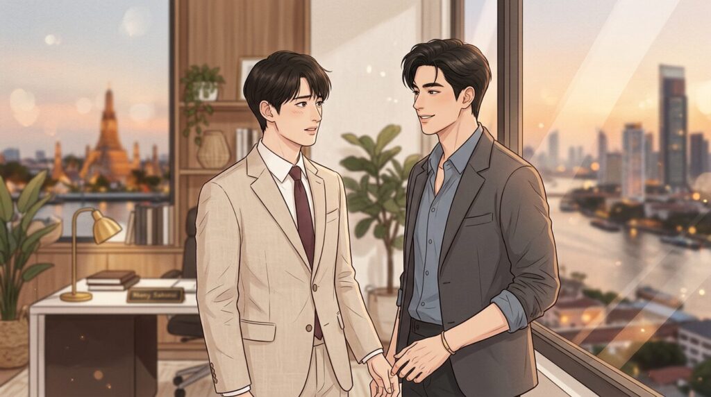 バンコクの都市風景やタイらしい食堂・街並みが随所に映し出され旅行気分も楽しめる。タイドラマ史上初の日本人主演BLという挑戦的な作品でありながら、鬼社長と新入社員という設定が生む緊張感と、距離が縮まるコミカルな展開のバランスが絶妙で、多くの視聴者を沼らせている。